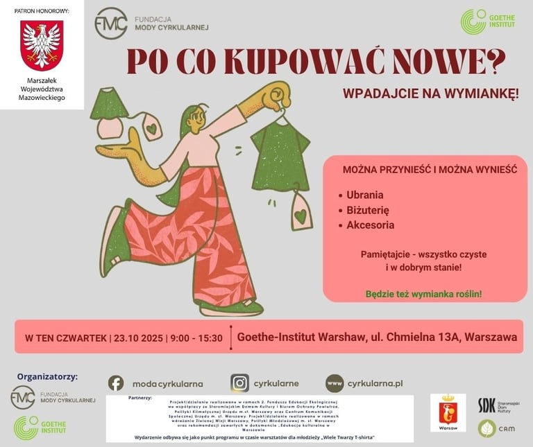 Przed nami Śniadanie Prasowe „Świadome wybory kontra odzieżowe tsunami”, które odbędzie się w czwartek 23 października 2025 r. o godzinie 10:15 w Goethe-Institut w Warszawie, przy ul. Chmielnej 13A.