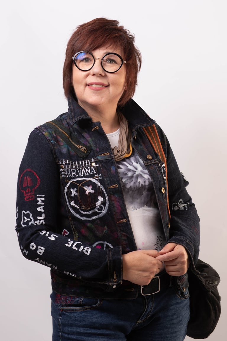 Grażyna Rykalska – praktyczka konstrukcji krawieckich i upcyklingu, prowadząca warsztaty naprawy i drugiego życia ubrań, łącząca rzemiosło z integracją międzypokoleniową