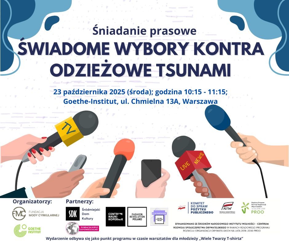 Już tylko kilka dni dzieli Fundację Mody Cyrkularnej od spotkania z Wami podczas 10 edycji Fast Textile Międzynarodowe Targi Tekstylne. Czekamy na Was przy stoisku C3.47b na terenie Ptak Warsaw Expo w dniach 19-21 listopada. Porozmawiamy o tym, jak tworzyć dobrą i przyjazną dla planety modę. Nasze spotkanie Wami współfinansuje Narodowy Instytut Wolności - Centrum Rozwoju Społeczeństwa Obywatelskiego. Przybywajcie! Kolejne informacje niebawem